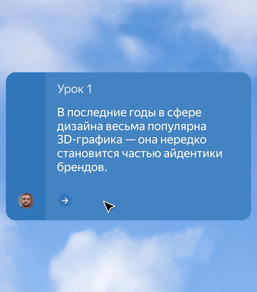 Непрерывная практика подготовит вас к реальной работе: вас ждёт 11 групповых воркшопов и 3 индивидуальные встречи с опытными 3D‑дизайнерами.