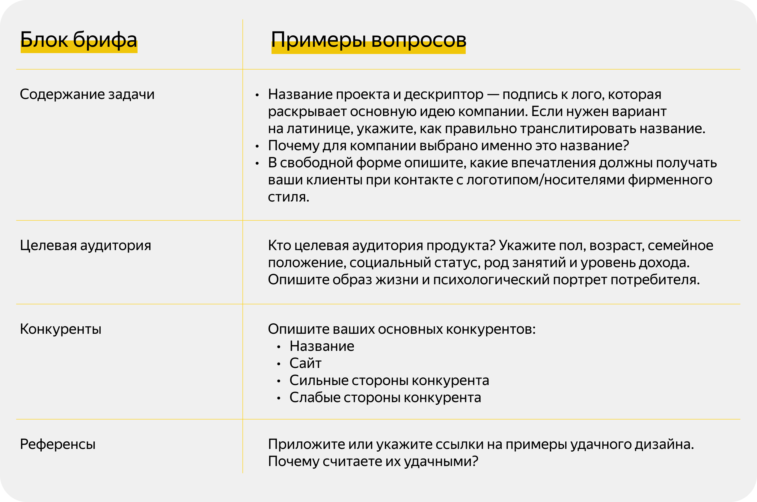 Рассмотрим примеры вопросов, которые можно указать в брифе на разработку дизайна.