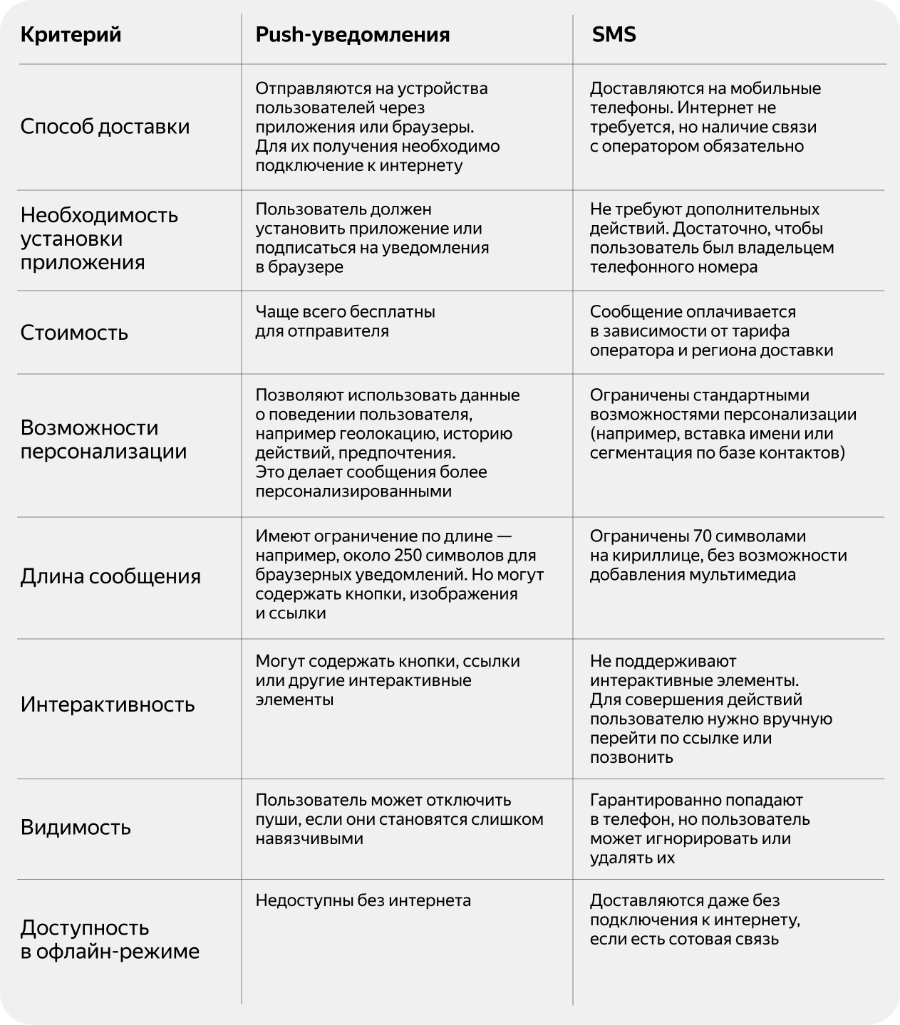 И push-уведомления, и SMS — это инструменты для отправки сообщений пользователям, но они различаются по способу доставки, формату, возможностям. Рассмотрим основные отличия: