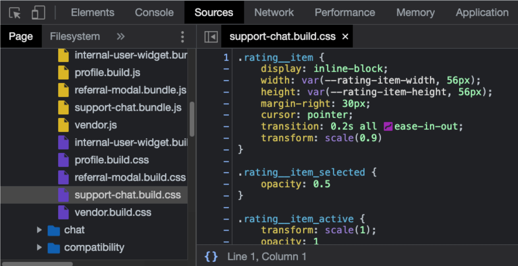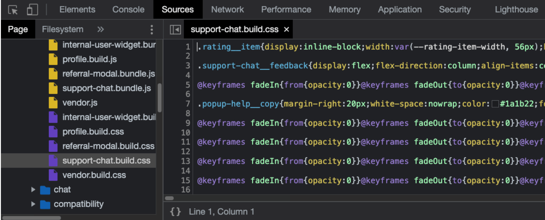 Во вкладке отображаются загруженные из всех источников файлы, к которым в разное время обращался сайт. Чаще всего к этой панели разработчики обращаются при отладке кода, она позволяет увидеть все файлы, просмотреть их содержимое и поставить в нужных местах точки останова (breakpoint), чтобы посмотреть значения нужных переменных в любой момент. Если получить доступ к локальным файлам через Workspaces, Sources можно использовать в качестве полноценного редактора кода.