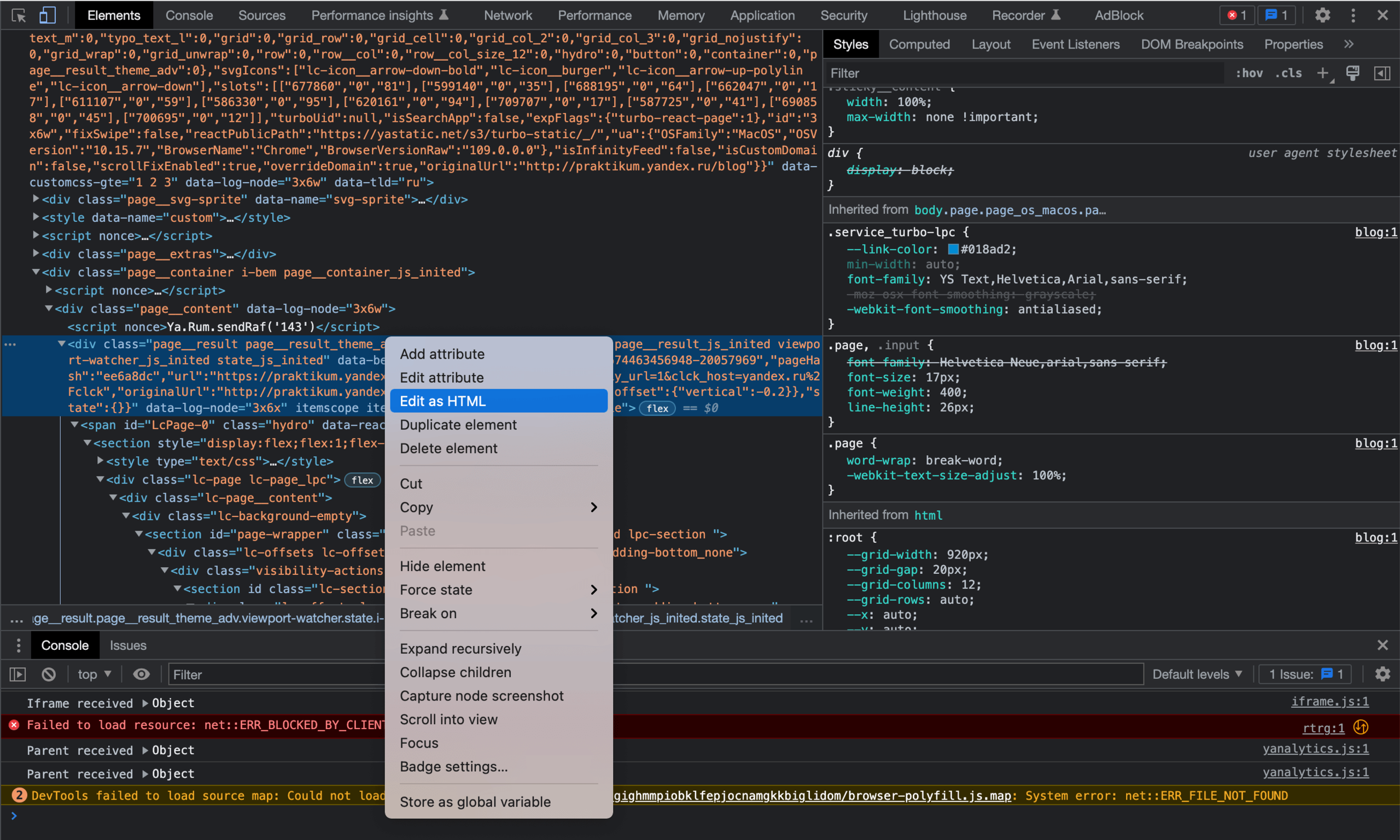 Чтобы открыть DevTools, нужно вызвать контекстное меню, в нём будет один из пунктов:
