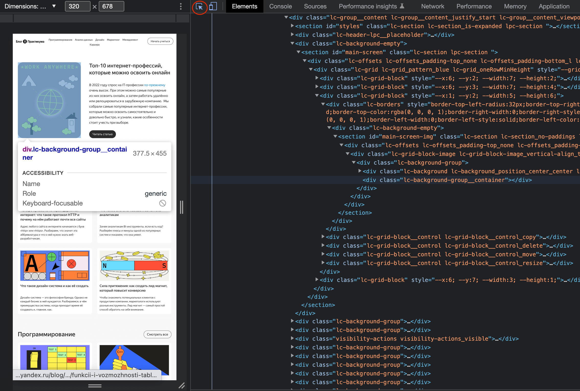 1. Через инспектор. Этот способ подходит, даже если DevTools пока ещё не открыт, но элемент хорошо видно. Если кликнуть по нему правой кнопкой мыши, появится контекстное меню, где нужно выбрать Inspect или «Просмотреть код».