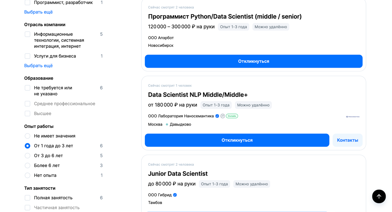 Data Scientist. Ищет закономерности в больших данных и создаёт прогнозные модели. Использует различные языки программирования, библиотеки машинного обучения. По данным hh.ru, доход специалиста в области Data Science с опытом — от 150 тыс. рублей.