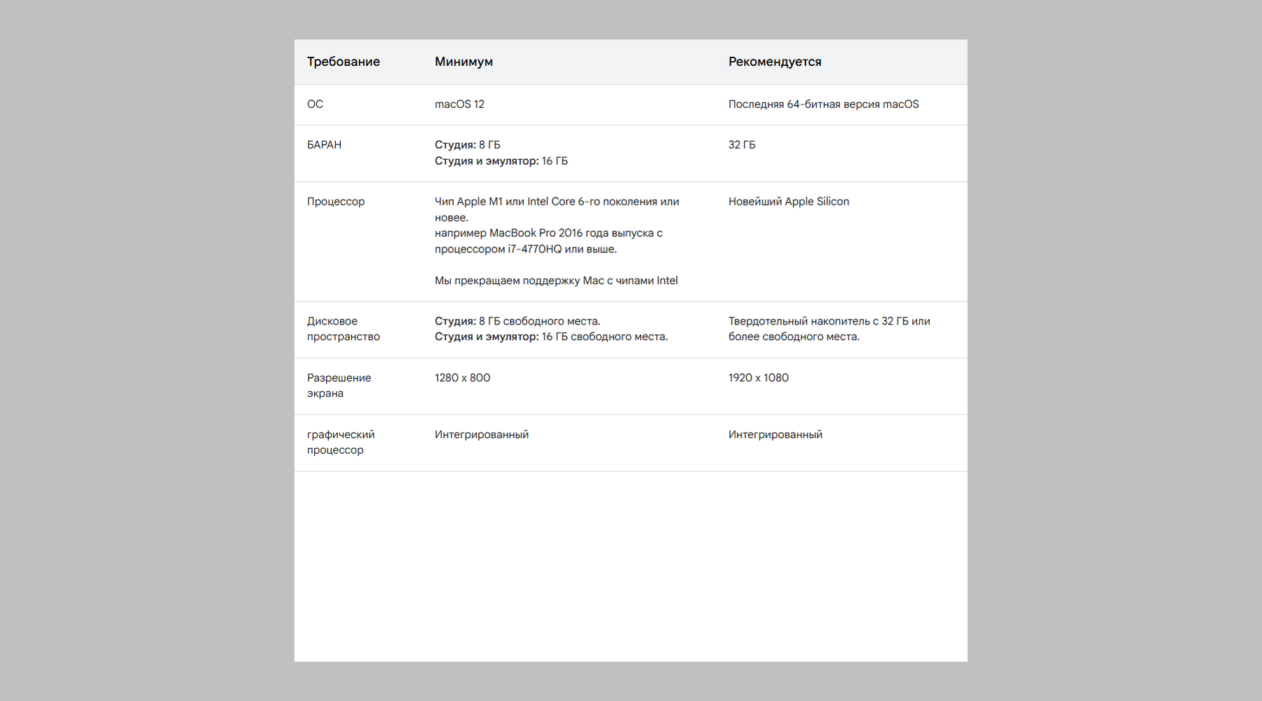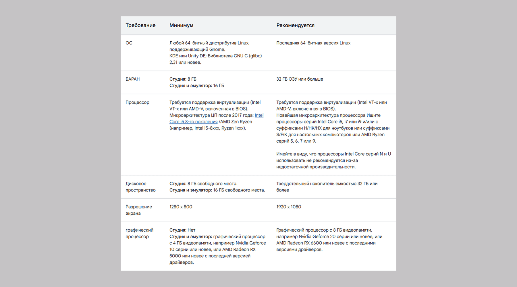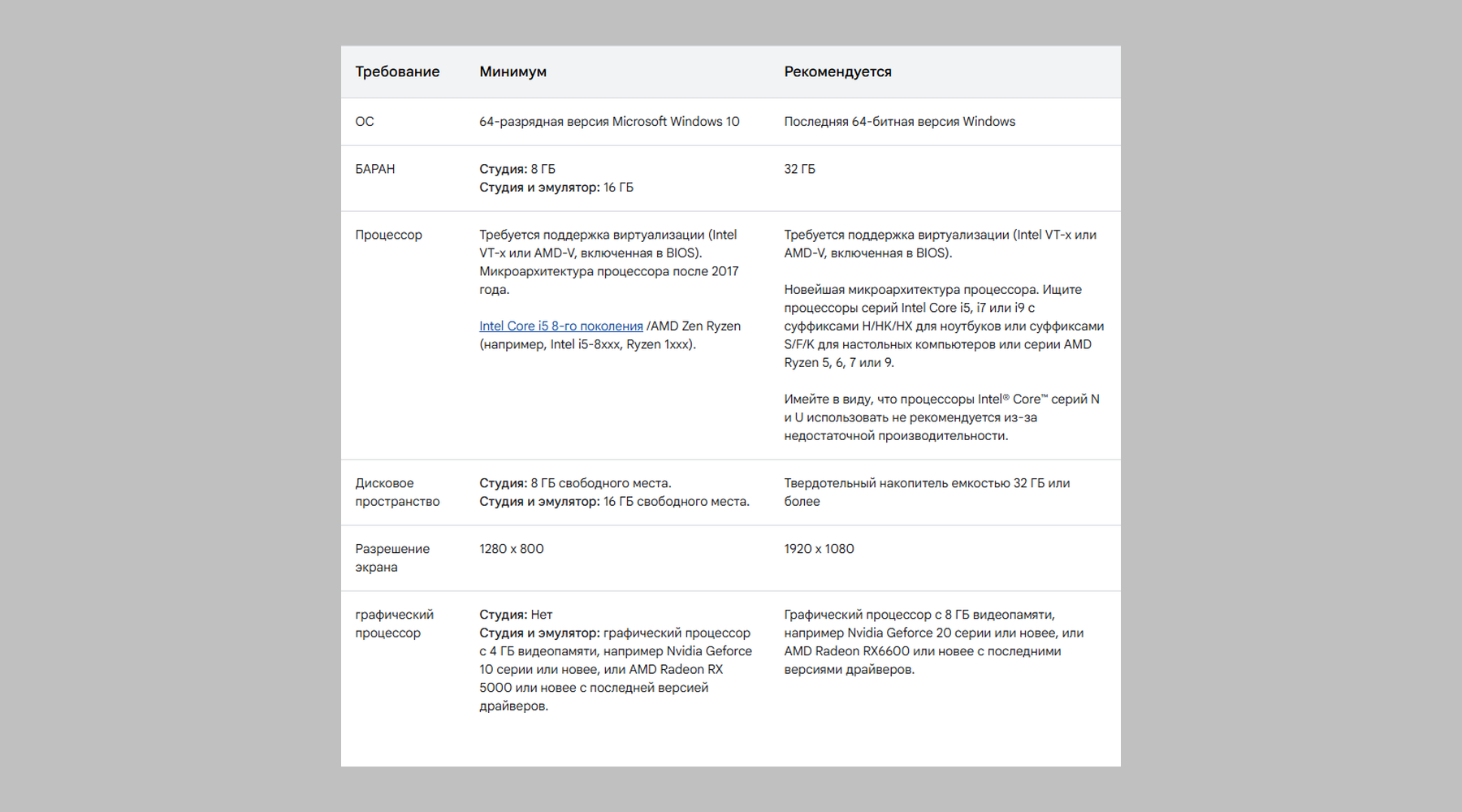 ● Android Studio. Сначала программу нужно скачать с официального сайта и установить на компьютер. У Android Studio есть системные требования к операционным системам: