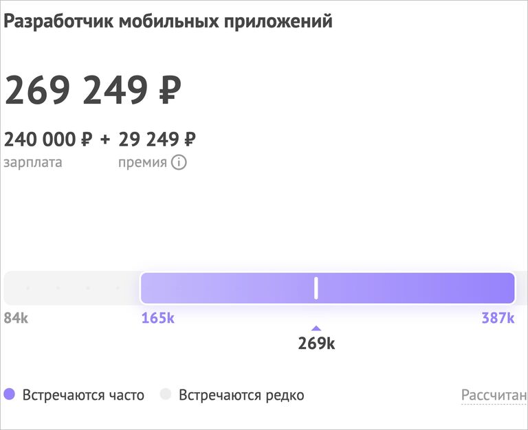 В среднем разработчик мобильных приложений зарабатывает 269 тыс. рублей. Источник