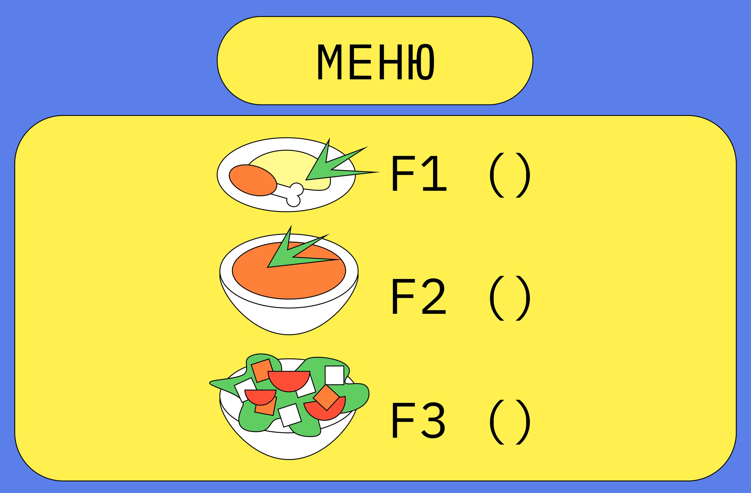 Императивное программирование развивалось как процедурное, где основное понятие — это функция. Функция, или процедура — это последовательность действий, которые записали и назвали. Например, инструкция по сборке шкафа или рецепт тыквенного супа — это функции. Процедура и функция — одно и то же понятие, но процедурное и функциональное программирование различаются. Первое относится к императивной парадигме, а второе — к декларативной.