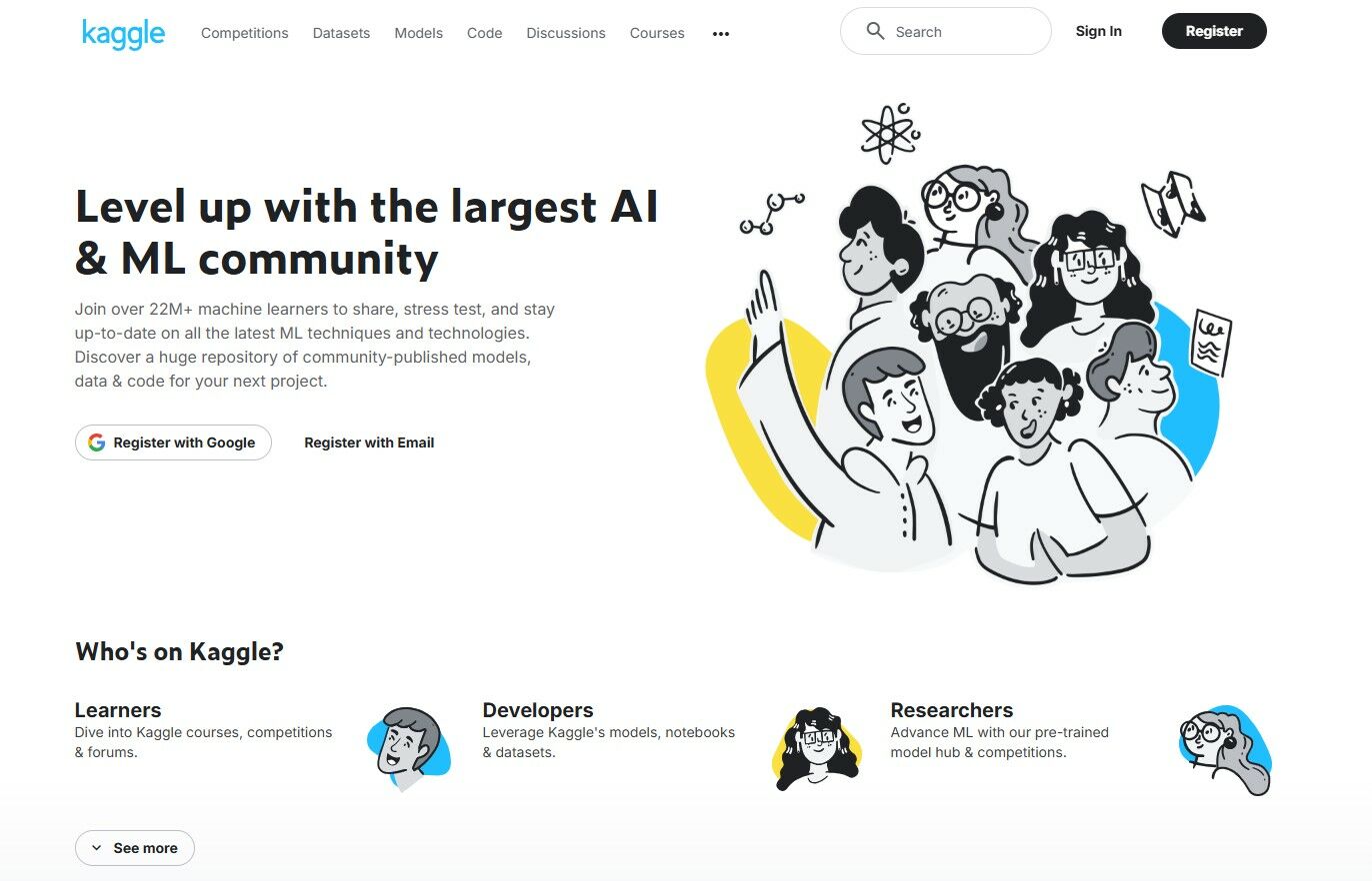 Специалисты ценят Kaggle за масштабное комьюнити — платформа объединяет более 22 млн пользователей. К несомненным плюсам также относятся огромный репозиторий датасетов и готовых к развёртыванию моделей. Ещё одна привлекательная особенность платформы — возможность поучаствовать в соревнованиях и заработать.