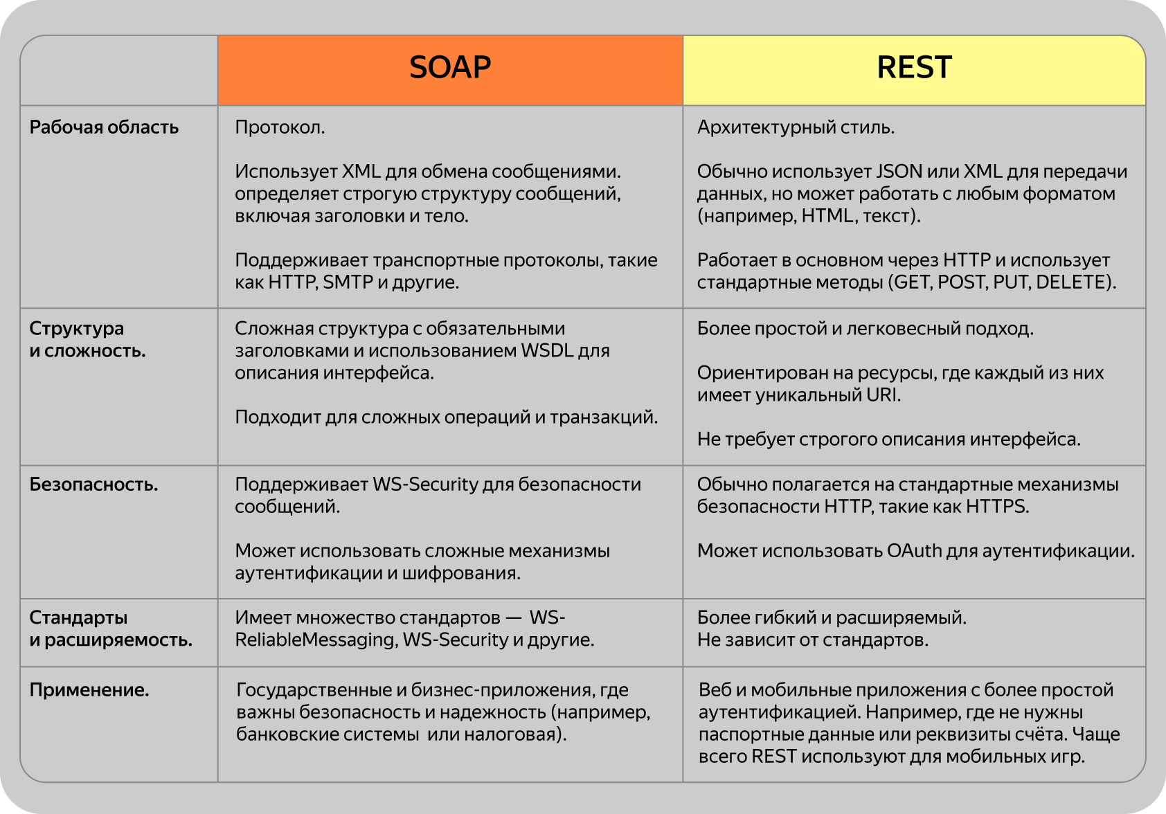 Как и SOAP, REST придерживается формата «запрос-ответ», но есть и отличия.