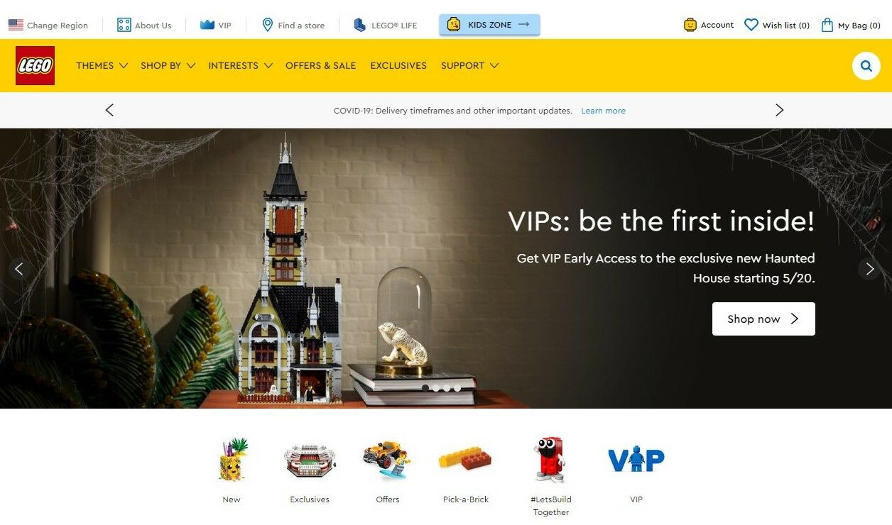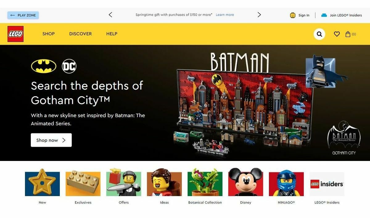 Lego образца 2020 года vs Lego образца 2024 года: акцент на главном и крупные иконки разделов. Источник: webdesignmuseum