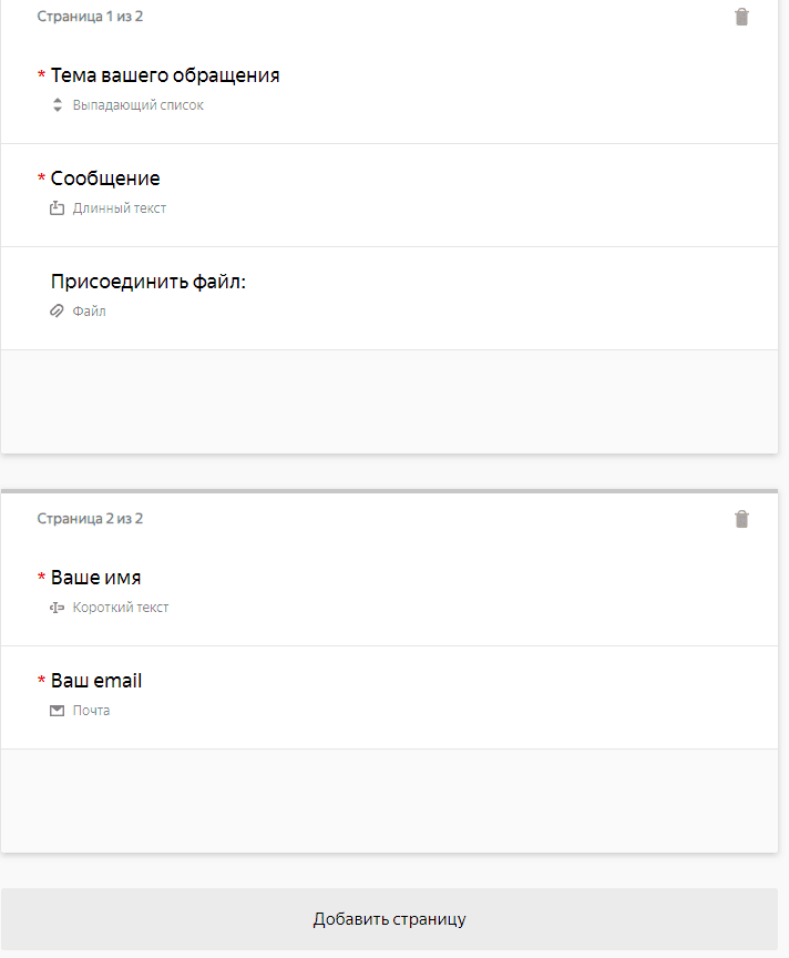 ● Форма обратной связи — это инструмент, который позволяет пользователям оставлять комментарии, вопросы, предложения или жалобы. В Яндекс Формах окно обратной связи поделено на пять полей: