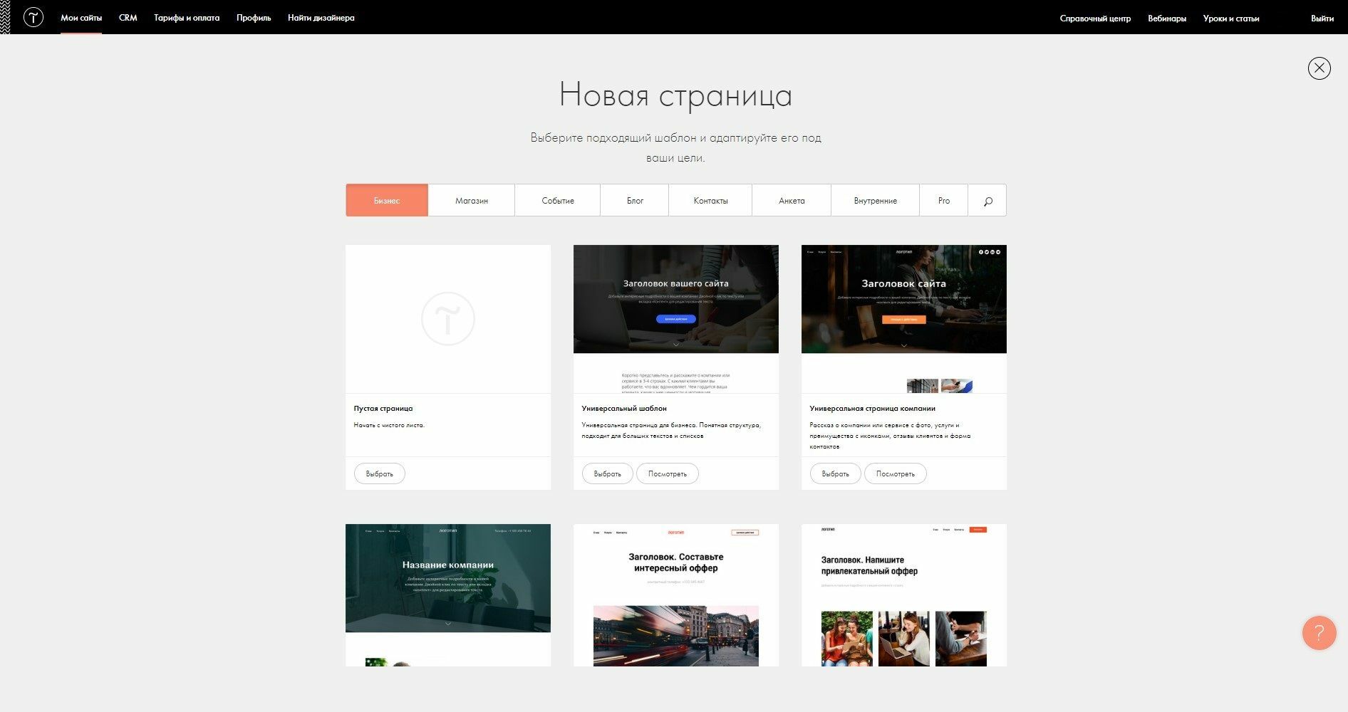 Цена: Tilda Personal — 500 ₽ в месяц. Можно создать один сайт на 500 страниц. Tilda Business — 1 000 ₽ в месяц. Можно создать пять сайтов по 500 страниц каждый, есть опция экспорта кода.