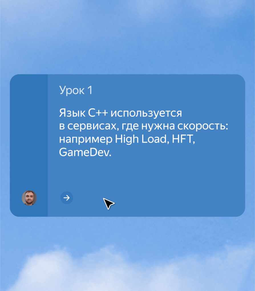 Встроенный тренажёр моментально проверяет решения, отмечает ошибки и помогает довести код до идеала. Если задание покажется сложным, с ним помогут наставники.